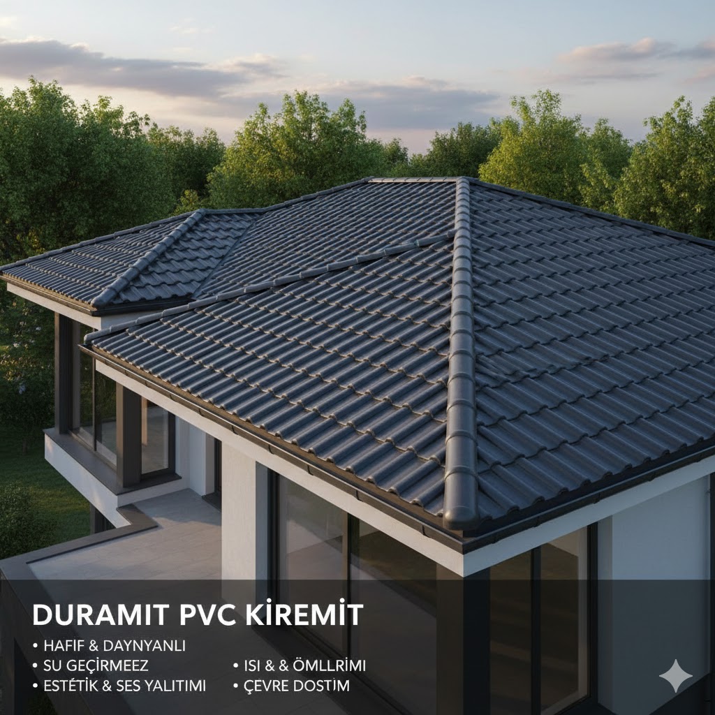 Duramit(pvc kiremit) çatı kaplama malzemesi özel performansı ile konut ve tüm inşaat sektöründe uygulama alanı bulur. Bir çok faydası ile ideal bir üründür. Dış cepheye bakan üst malzemesi anti iklim kaplama amaca yöneliktir. Her türlü iklim koşullarına dayanıklıdır. Yağmur, dolu, kar, don, rutubet ve Uv ışımalarının olumsuz etkilerini ortadan kaldırır. Pvc kiremit sistemleri ana malzeme ve yardımcı ürünleri ile komple bir sistem sunmaktadır. 5 renkte duramit kiremit ve yardımcı malzemeler üretilmiştir. Yardımcı malzemeler;