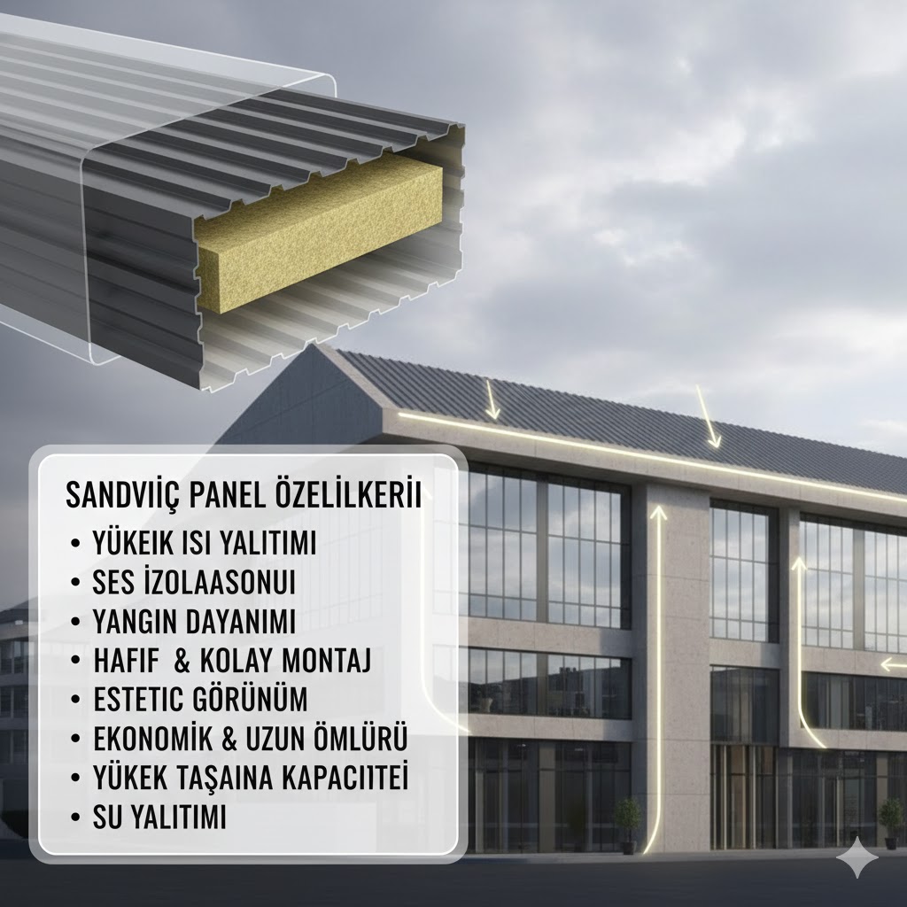 Sandviç panel genel özellikleri;